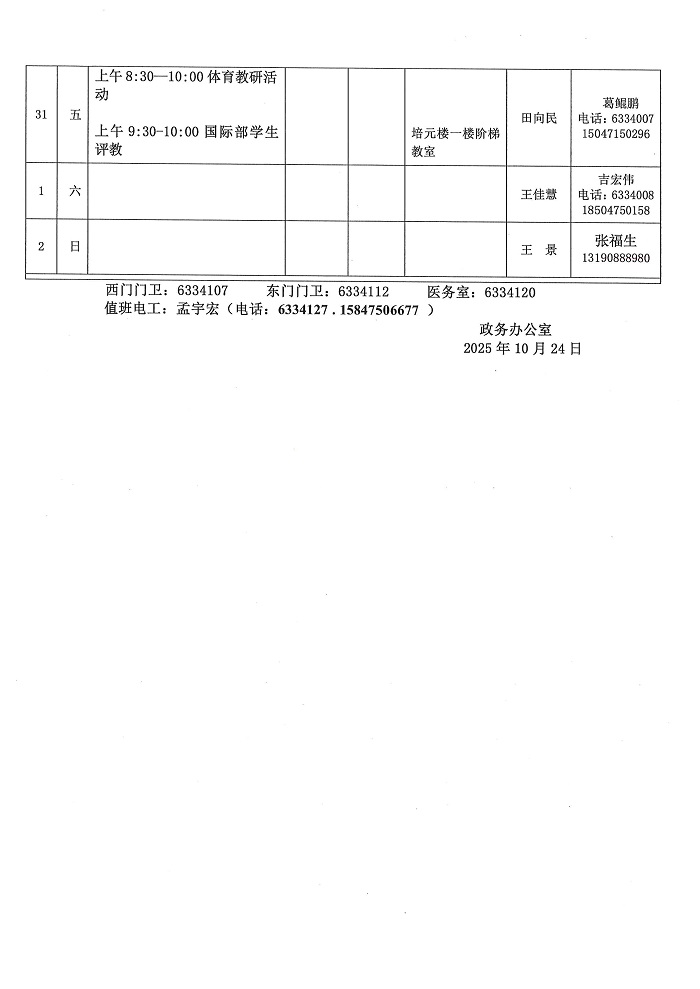 10月23日住宿生加减分通知单
