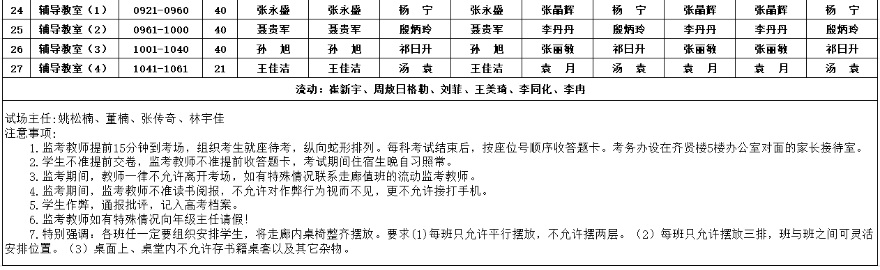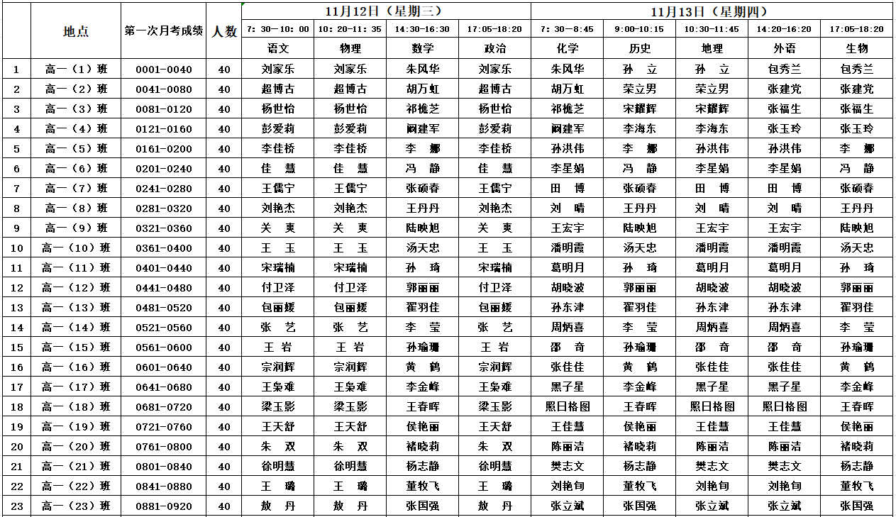 通辽五中2025~2026学年度上学期期中安排表[高一]