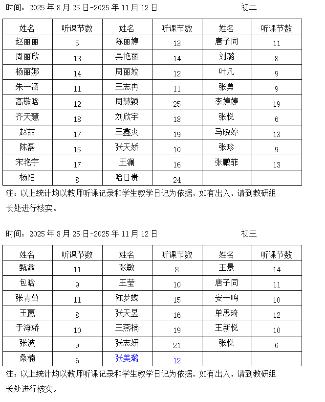 通辽五中教师听课情况记录单{初中部音体美、心理}