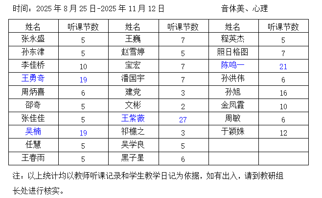 通辽五中教师听课情况记录单{高中部音体美、心理}