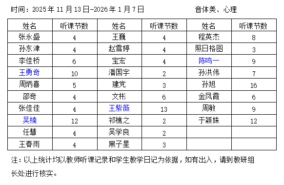 通辽市第五中学听课记录单{高中部音体美、心理}