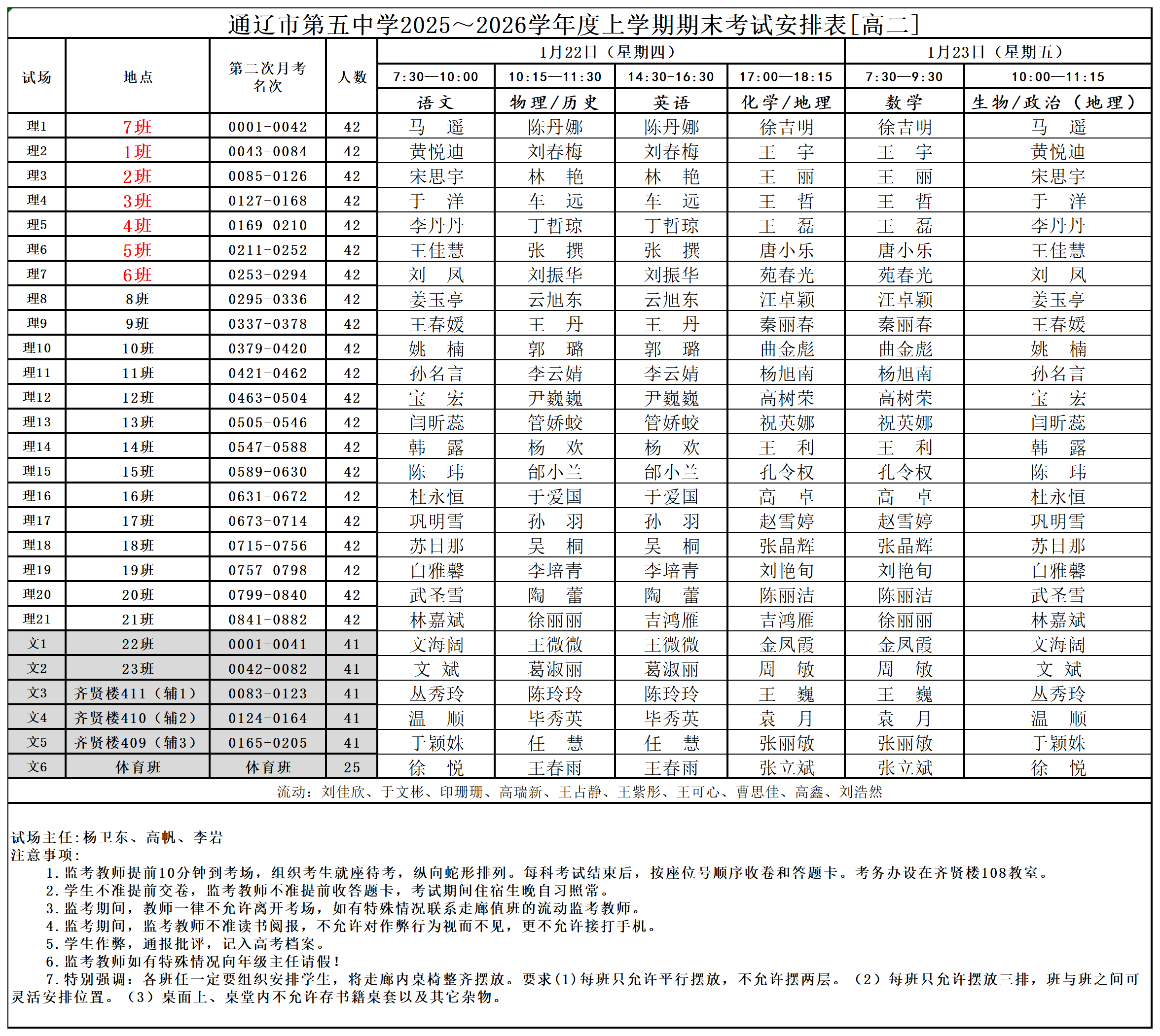 通辽市第五中学2025~2026学年度上学期期末考试安排表[高二]