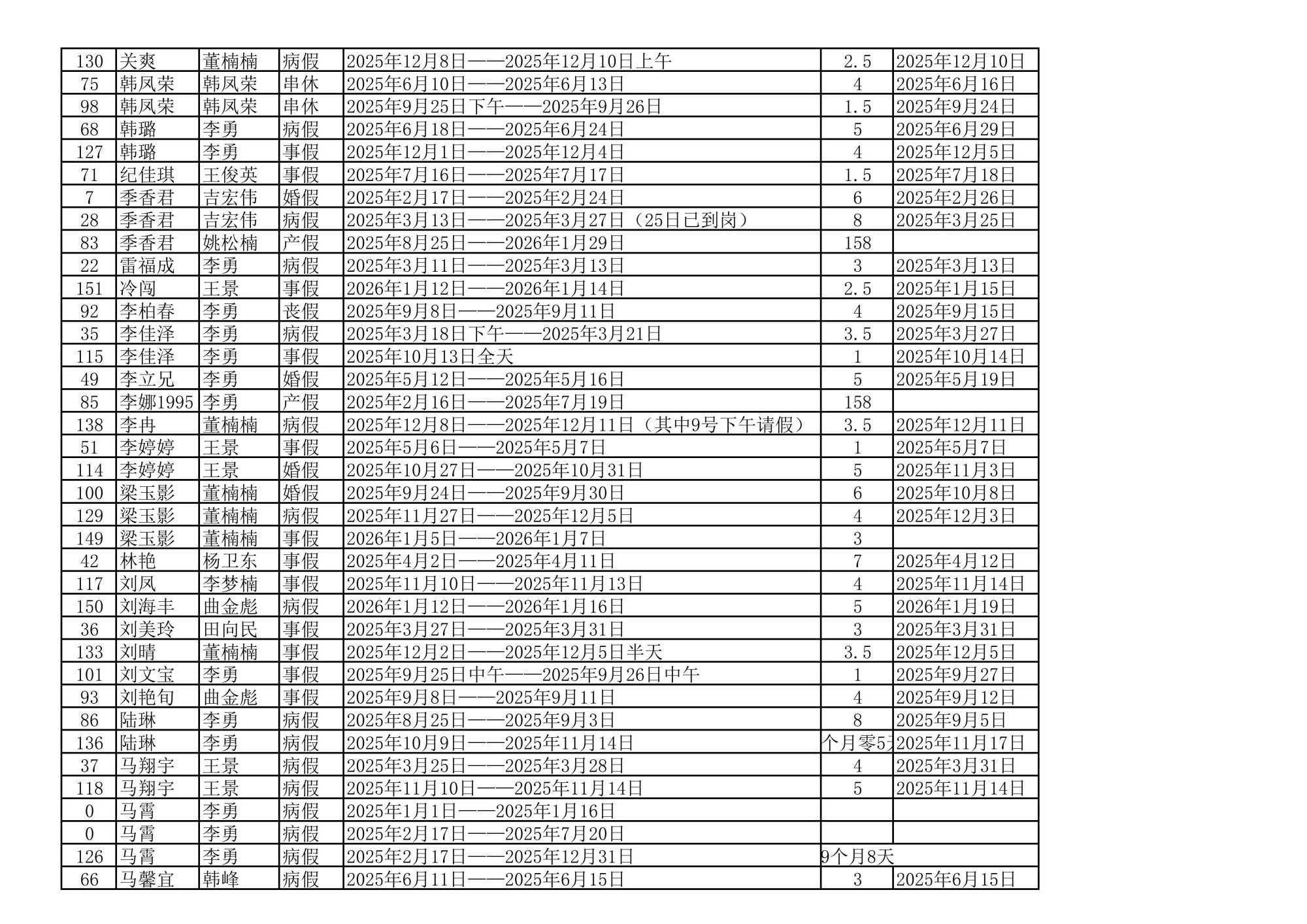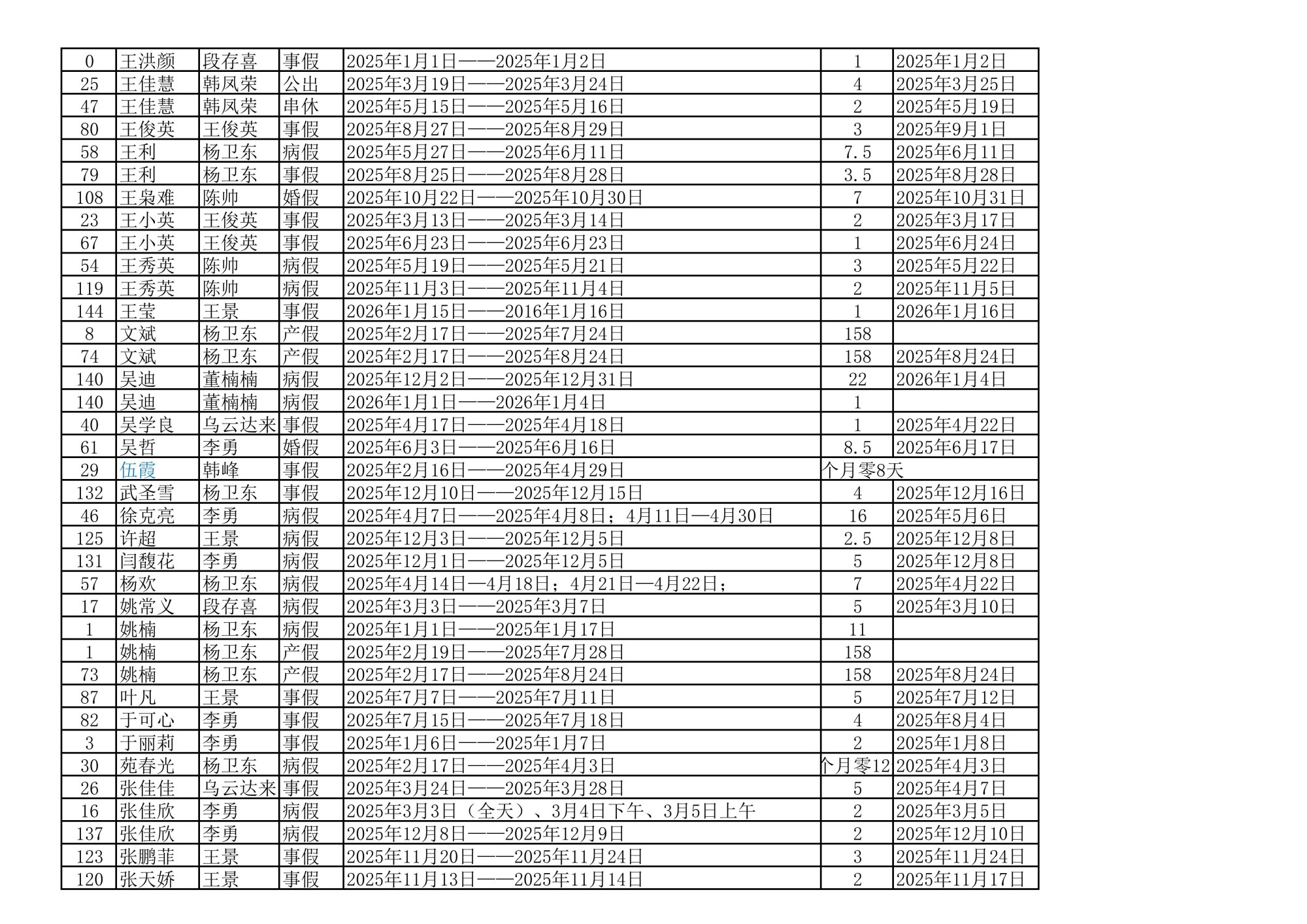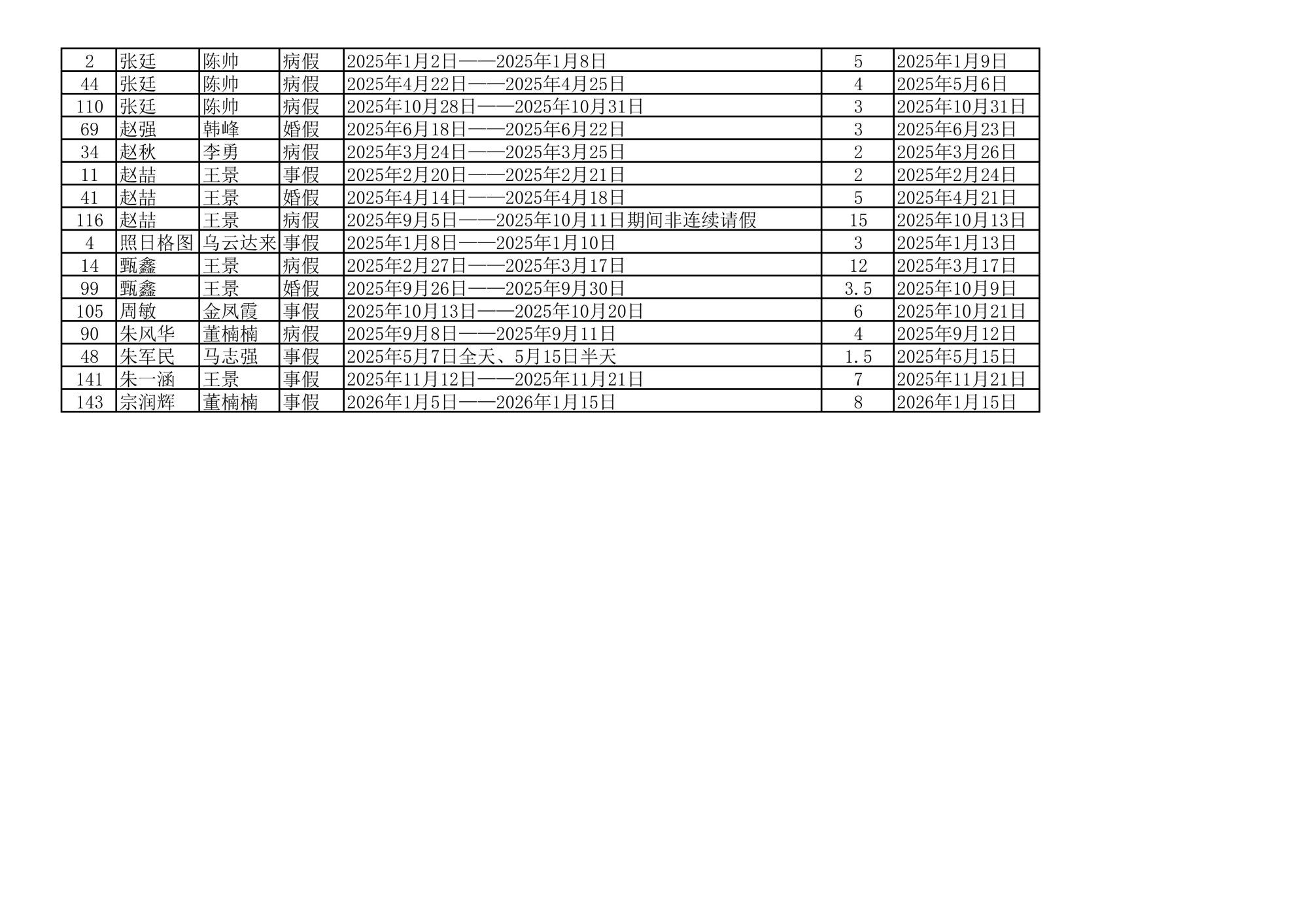 现将2025年度教职工的请假情况进行公示,公示时间2026年1月20日——2026年1月23日,如有疑意,请联系人事科,联系电话6334177.