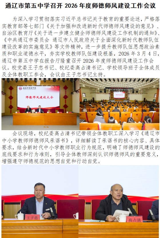 通辽市第五中学召开2026年度师德师风大会