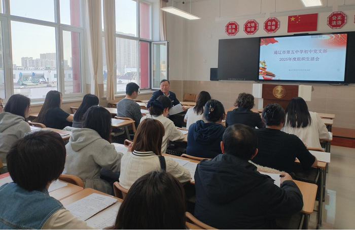 为持续强化党支部政治功能与组织功能,严肃党内政治生活,提升党员党性修养与履职能力,2026年3月23日下午,通辽市第五中学初中党支部召开2025年度组织生活会。会议由组织委员单思琦同志主持,校党委委员、副校长吉宏伟同志以组织生活观察员身份出席会议,党委书记王子忠同志以普通党员身份参加会议。